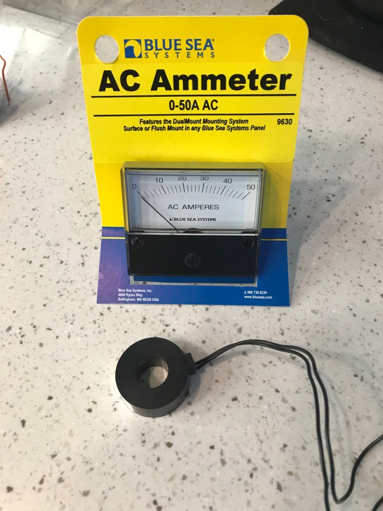 With the Inverter Project done, I wanted a way to see the amount of AC power I was using in order to better manage load and battery life. So while I had worked my way into the back side of the AC and DC distribution panels I installed two Blue Sea AC Ammeters. Yes, they are analog, but they are a VERY good brand from the marine world and more than accurate enough. I trust them more than the cheapo digitals and while I could drop more coin on Victron toys I decided to put these in. They are VERY simple. All you do is slide the coil over the Line in (the “Hot” line). Of course there are two lines in so you need two. And yes you have to remove them from the breakers and peel back some insulation to get them on there. Kinda finicky as there is also the automatic load shedding coil in there. If you want background lights there’s two wires. And since I was right next to the DC fuse block, with space available, I said why not. With an on off switch on a pretty mahogany panel. And while I was there I added a USB outlet. For the thousands of things we have that need charging.
